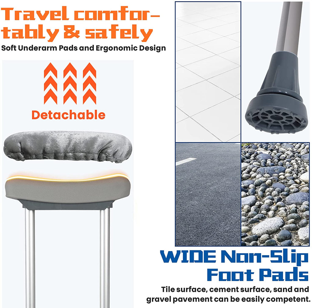 Anti Slip Rubber Base:The excellent friction of the crutches feet can provide greater stability on uneven and unstable ground.Provide users with additional maneuverability both indoors and outdoors