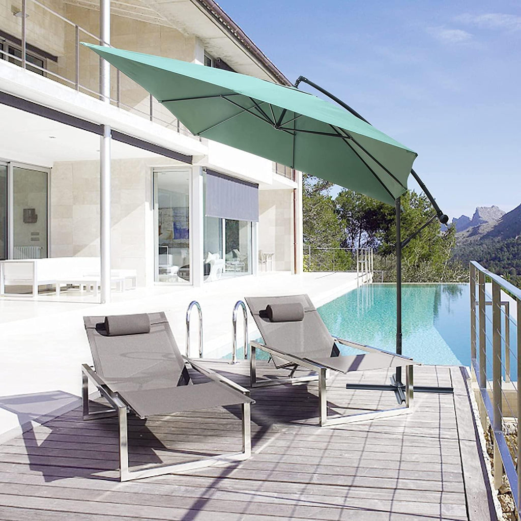 - Floating Style- The skylight on the top allows air and heat to circulate, reducing wind pressure to enhance stability. Gently swayed in light winds. This patio offset umbrella has 8 Strong Steel Ribs, and anti-oxidation spraying can prevent rust and breakage, strong enough and durable.