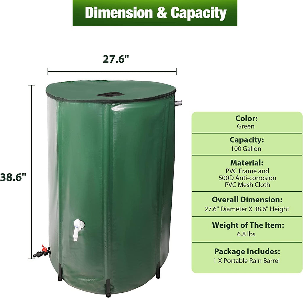 High Quality Materials: It will ensure stability and long-time using. Our rain barrel is made from 7 Pcs PVC support rod, 500D PVC cloth, ABS outlet valve. It is designed for long-term usage even in the cold winter time. Unlike traditional barrels, this barrel is crack-free and more durable.