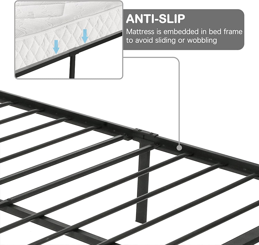 - Sturdy Bed Frame: 800 lbs weight capacity. Durable and noise free construction with solid metal side rails and multiple support legs for stability and durability. 14 iron slats offers great mattress support
