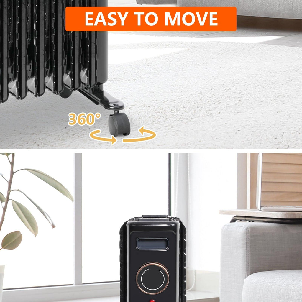 - With this electric heater, you can stay warm and comfortable in your room. Its caster wheels make it easy to move.