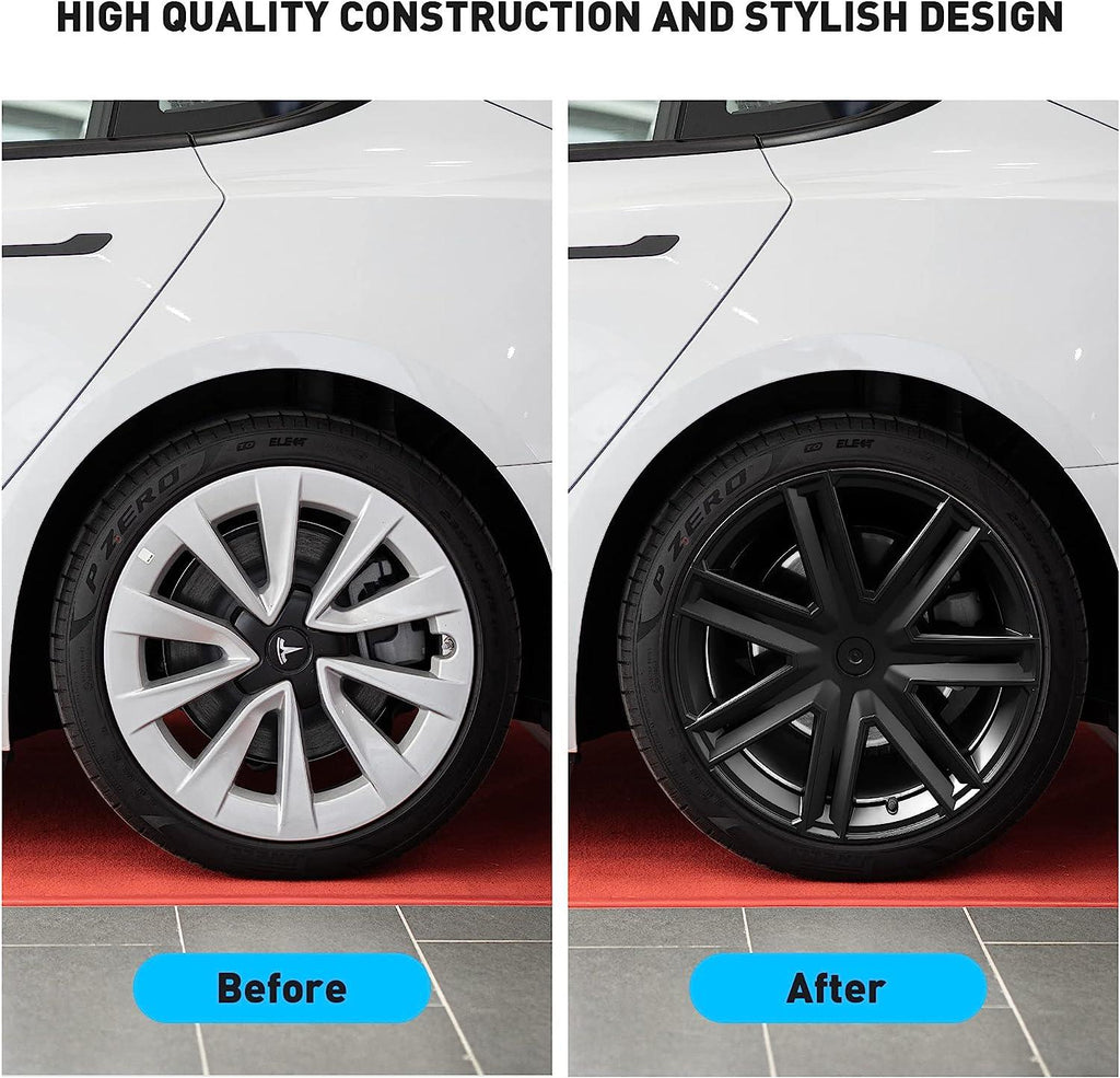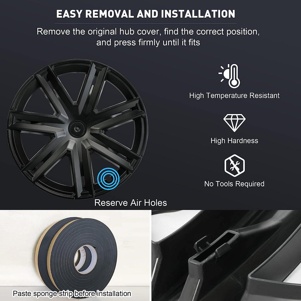 Perfect Fit: This 19-inch hubcap set of 4PCS is designed specifically to fit the 2019-2023 Tesla Model Y. The matte black finish further enhances the overall appearance of your vehicle while providing an extra layer of protection