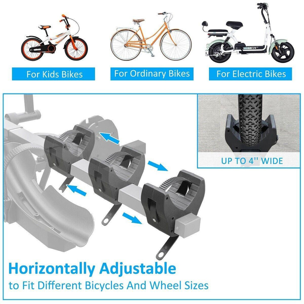 Vertically Adjustable Design: This trailer hitch bike rack is accommodating to most bike sizes and styles. Adjustable wheel holders allow you to easily accommodate bikes of different sizes and wheelbases.