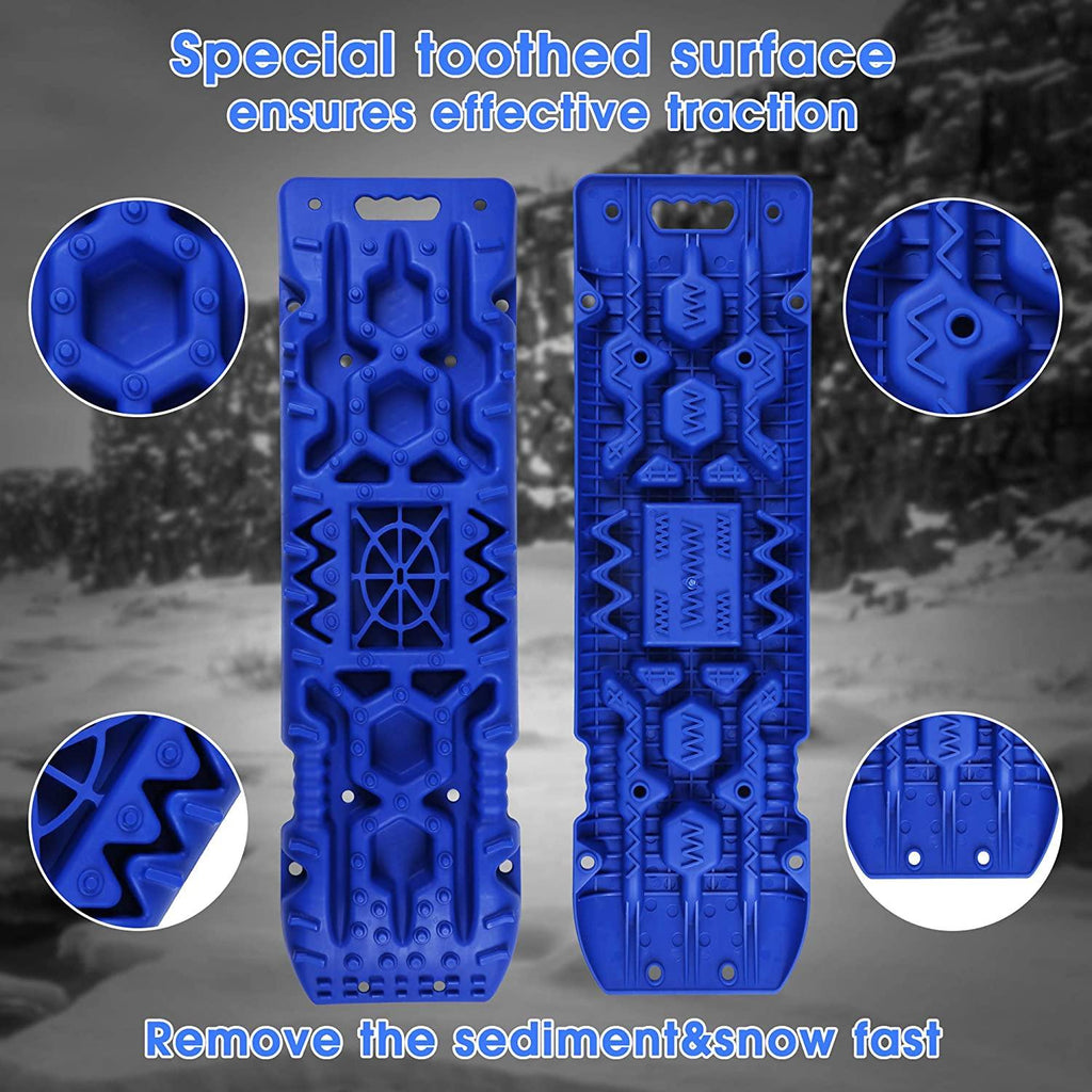 - Safety: Bump structure& gear design make traction boards get more traction than tire chains and snow chains when your vehicle in any harsh terrain. Suitable for any environment.