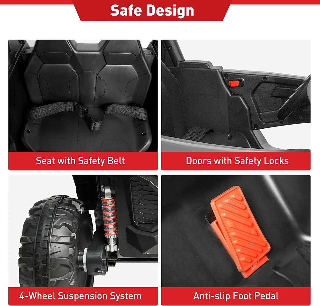 2-Seater Realistic Ride on Car: The 2-seater design allows to accommodate two young children to play together, enjoying double fun. 12V 7AH battery and 4PCS powerful motors provide enough power for the kids electric car in any situation. With 4WD design, toddlers can easily drive it on different terrains, such as brick road, asphalt road, wood floor, plastic runway and so on, enjoying hours of fun.