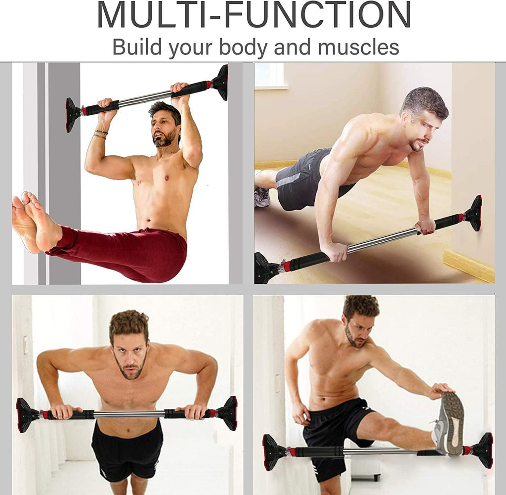 Adjustable Pull Up Bar:This pull up bar can be adjusted to fit the min 36 inches door frame. You need to turn the two sides to stretch the length of the pull bar up.