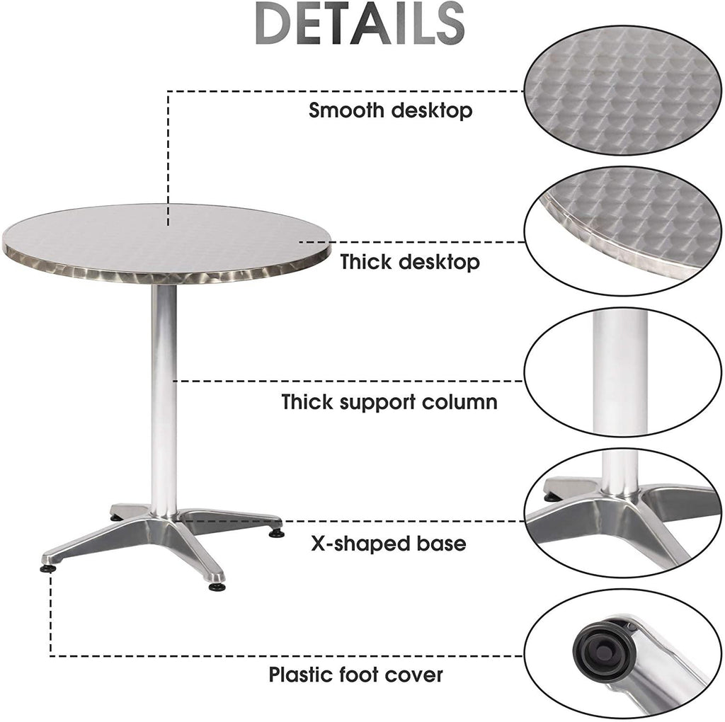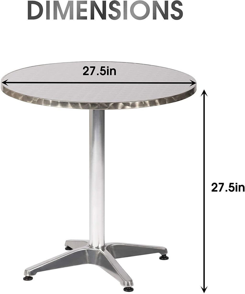 Specification: Material: Aluminum + Stainless Steel + Plastic foot cover; Desktop diameter: 27.5in, Height: 27.5in, Item Weight: 20.9lbs.
