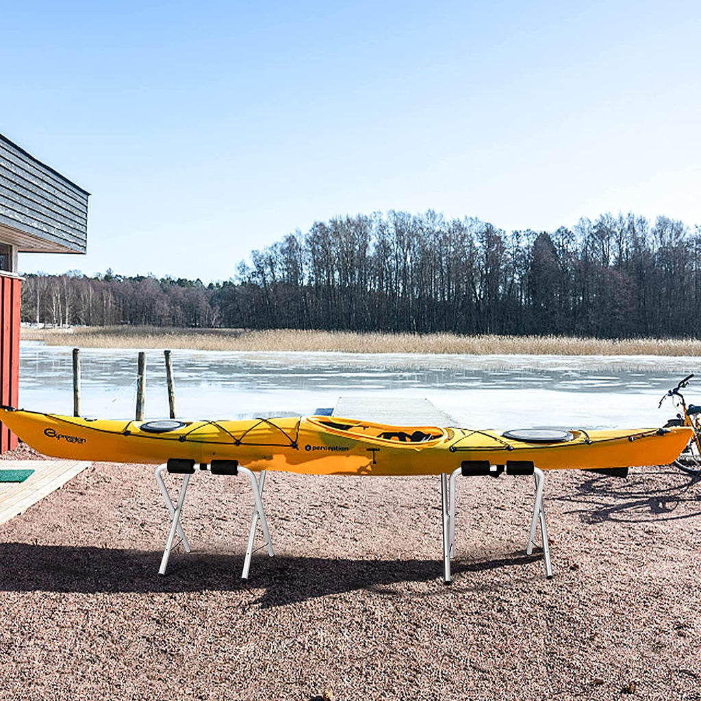 Widely Use: Our kayak storage racks can be used for tandem kayaks, canoes, stand up paddle boards (SUP), John boats and float mat.They can also be used outdoors or as displays as well.