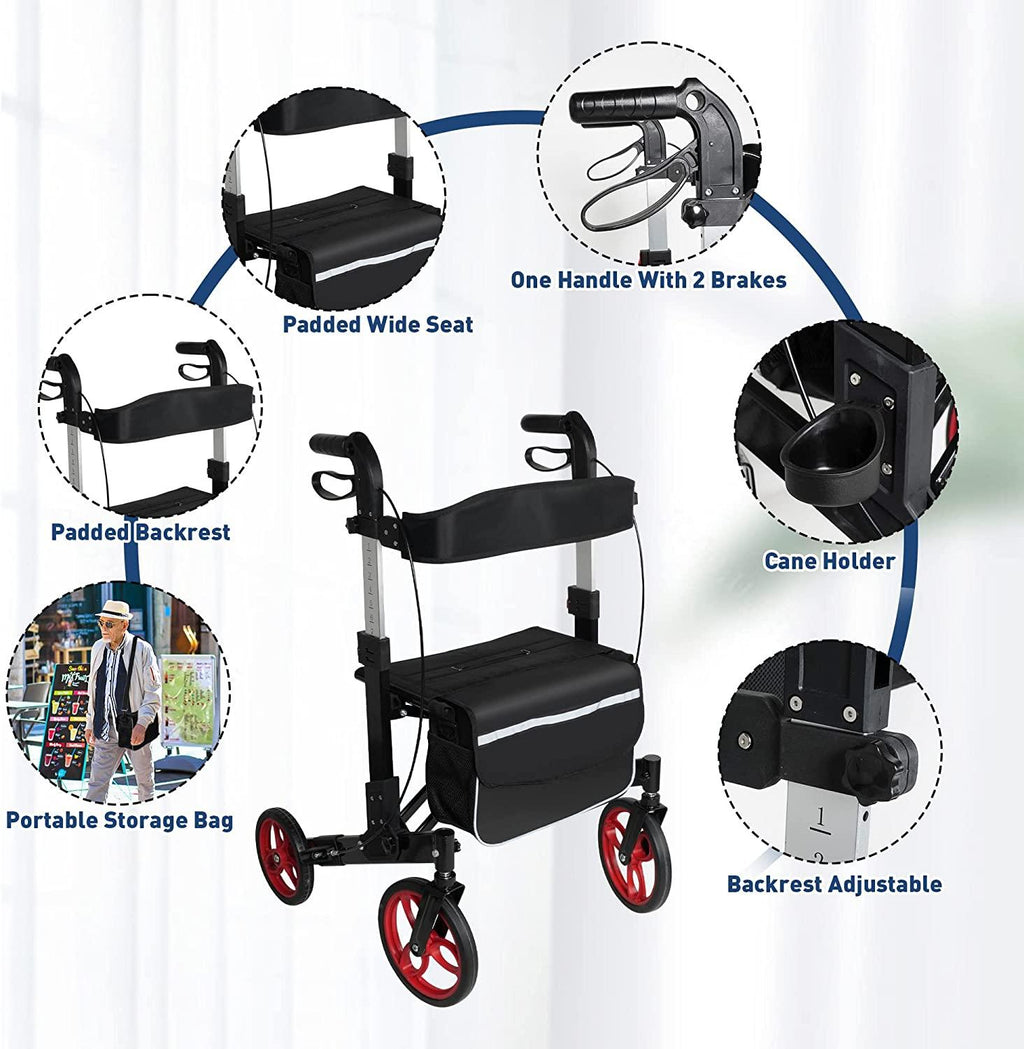 Humanization Design: The rollator walker for the elderly features a removable nylon shopping bag for storing items and a cane/umbrella holder, leaves your hands free. No more struggling with lifting when go grocery for supplies. One-handed folding design help the elderly pass through narrow space easily or put into the trunk of car to transport.