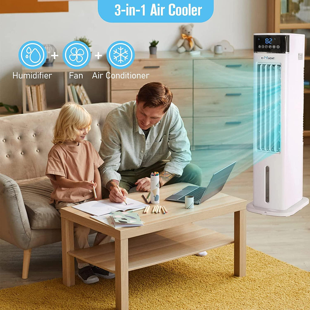 More Convenient Dual Control With Timer: Our cooling fan is equipped with 12H Timer feature and remote control to amplify your freedom even it has panel control way (touch screen). Have your swamp cooler in hand from 20Ft away without having to get up.