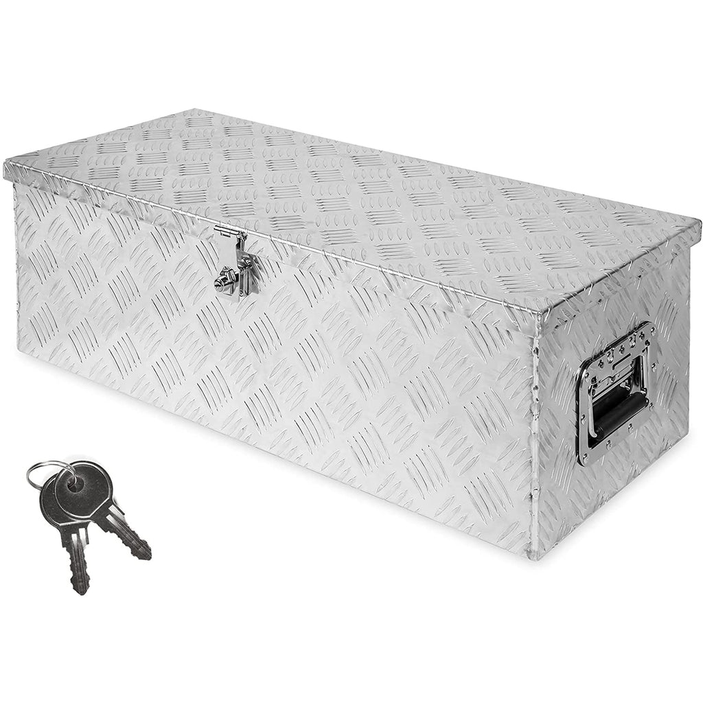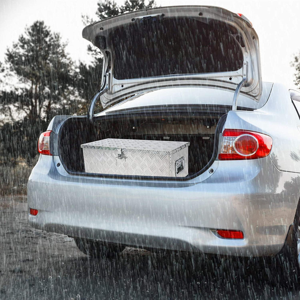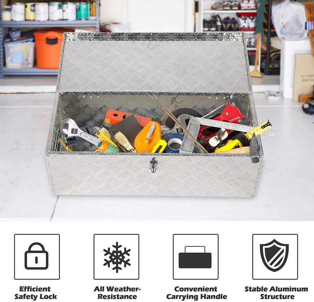 High Quality & Stable Structure: Made of Aluminum Alloy, trailer tool box is high-intensive & corrosion-resistant; durable for all weather. 5 bar tread pattern enhance the strength of the aluminum, thereby achieving maximum durability.