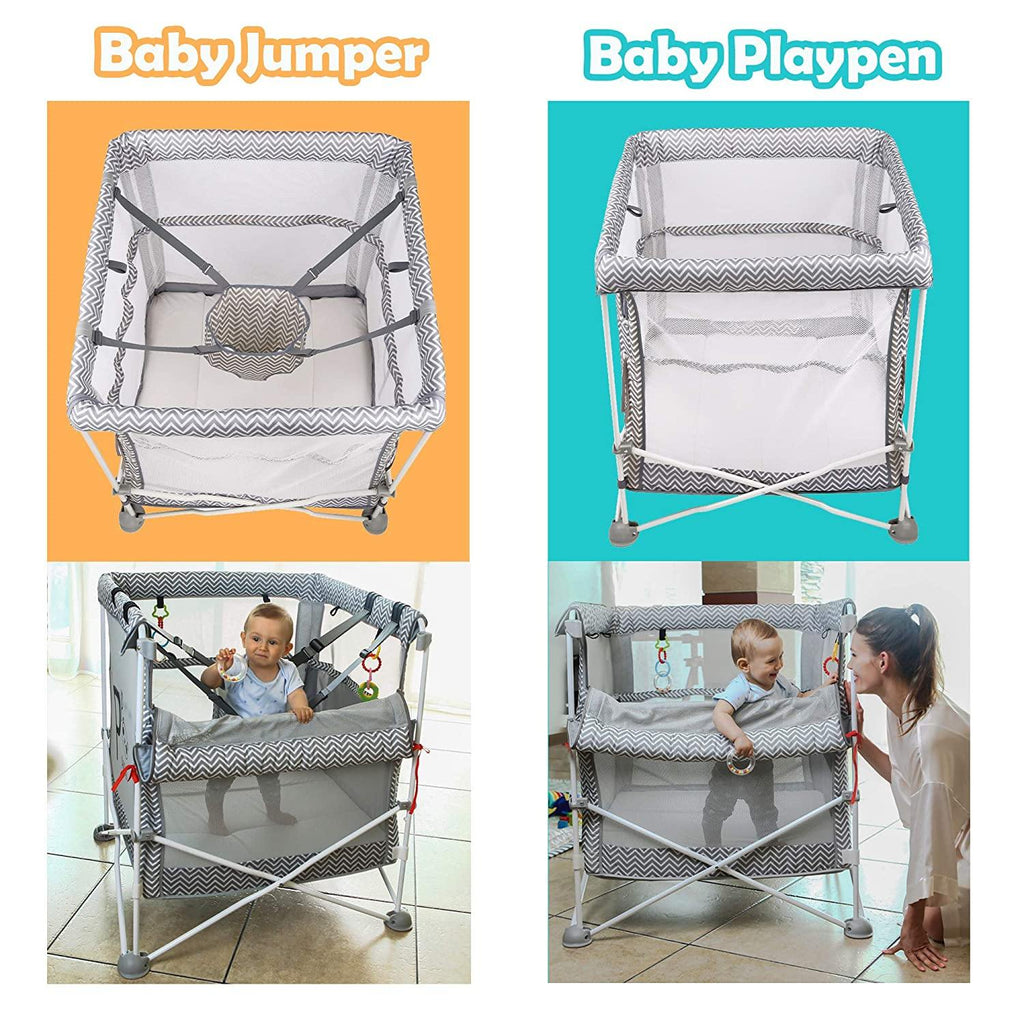 - For the newborn baby, it can be used as a side crib. When the baby get bigger, you can take off the bed part and let the baby play in it so you can do some housework or others. In addition, we are equipped with a detachable swing, which can also be used as a baby jumper and bouncer.