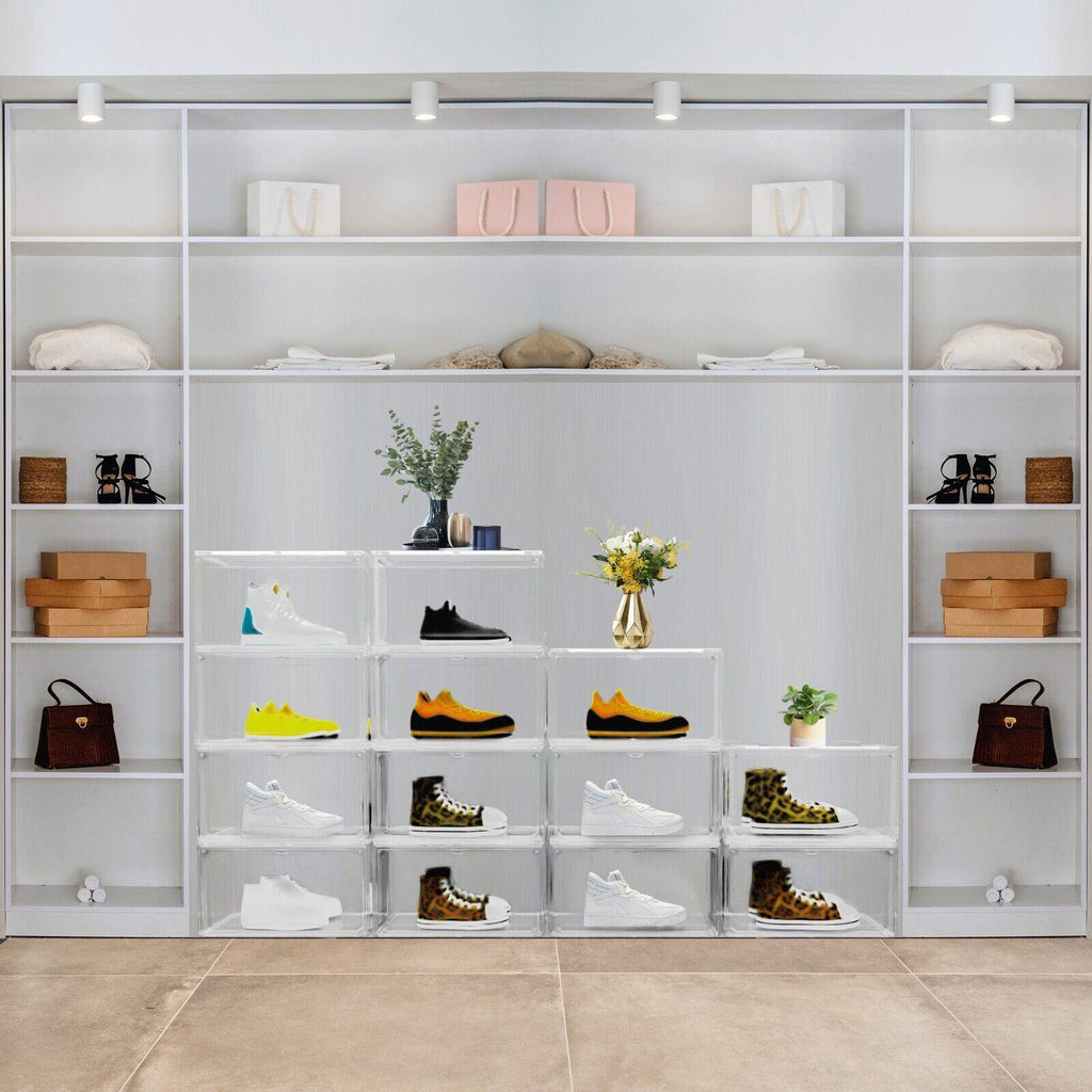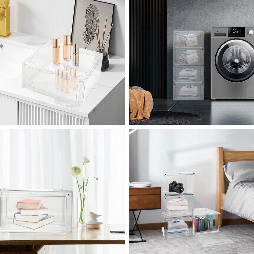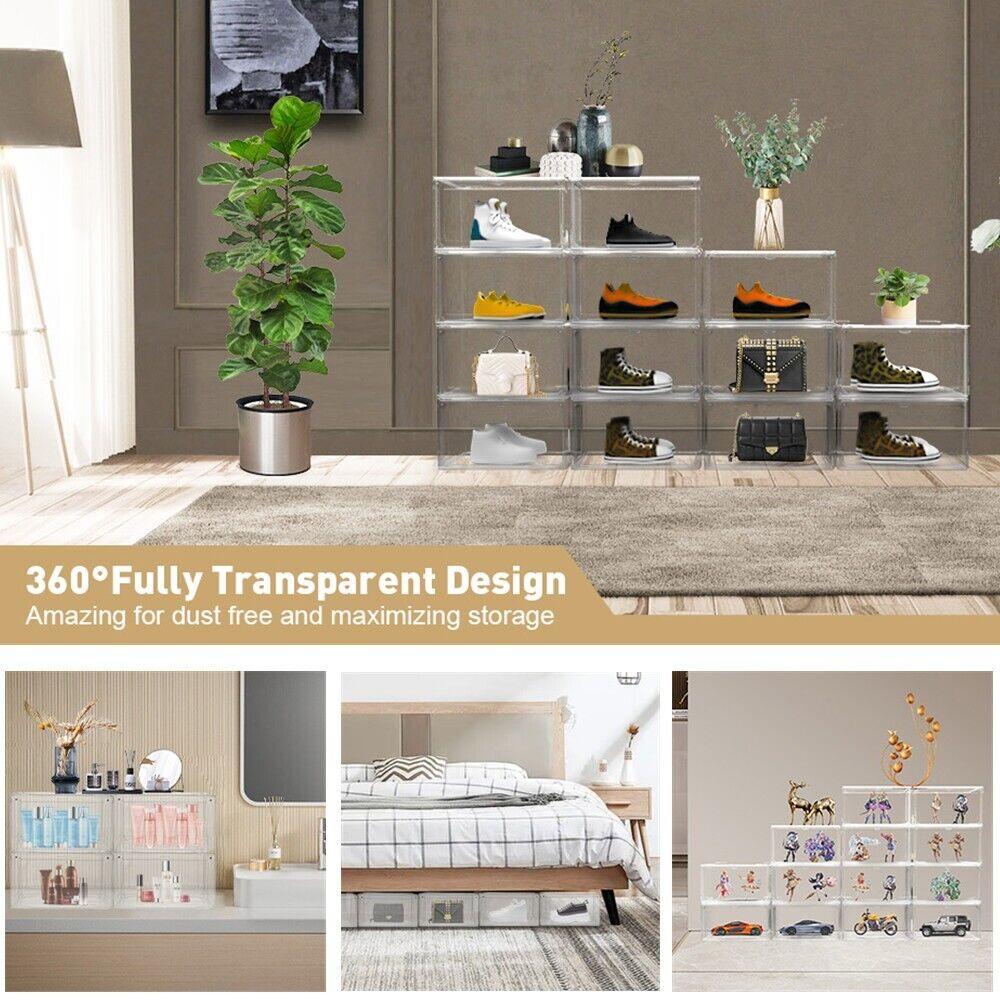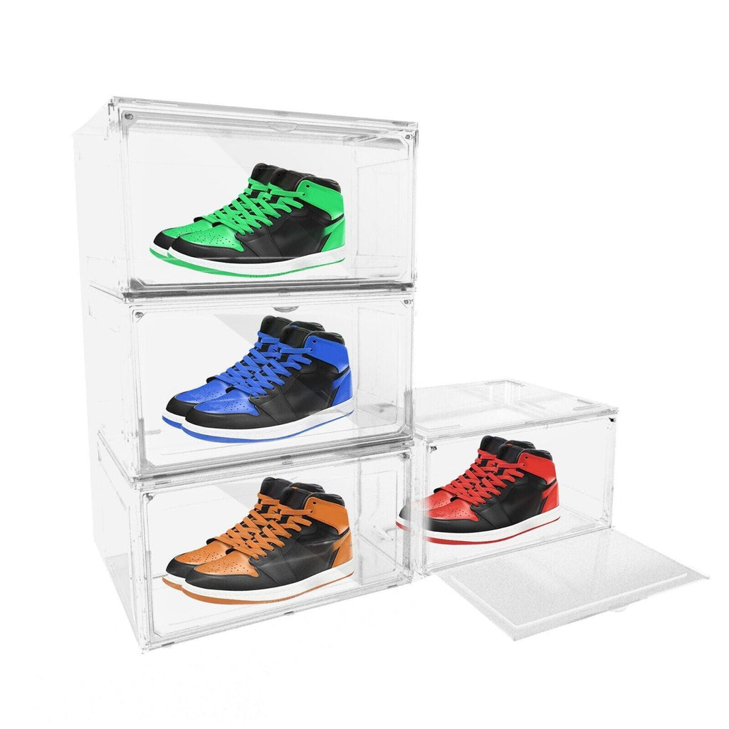 The 4-Pack Magnetic Stackable Shoe Storage Boxes offer a stylish and efficient solution to organize your shoe collection while keeping them free from dust. Constructed from durable PET material, these boxes are not only sturdy but also stackable, maximizing storage in your closet or room. The convenient magnetic front door ensures easy access to your shoes, and the clear sides provide a glimpse of the contents, eliminating the need to open each box individually. Streamline your shoe organization and enhance the tidiness of your space with these versatile and visually appealing storage boxes.
