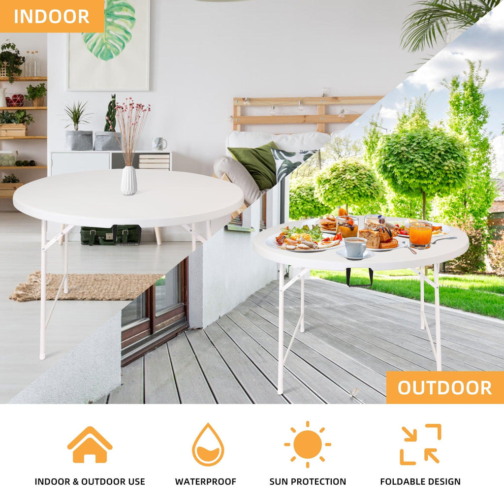 Indoor & Outdoor Use: The fold-in-half tables are constructed of high-density polyethylene and treated with UV technology, which has anti-aging function.