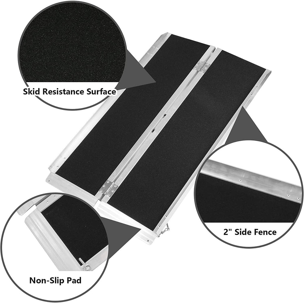Folding wheelchair ramps: Easy to fold, can be carried like a suitcase with a handle.