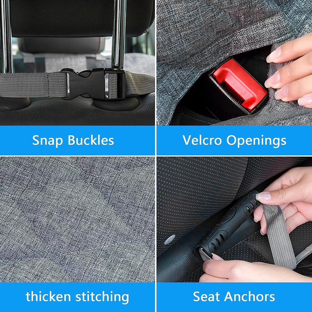 Safety & Extra Storage Pockets: 4 heavy-duty headrest anchors keep this dog car back seat cover completely in place, so your pet doesn't slip and slide around (even on the bumpiest rides). The extra storage pockets in this dog car seat covers make it easy for storing your pets’ snacks and keep your car inside tidy.