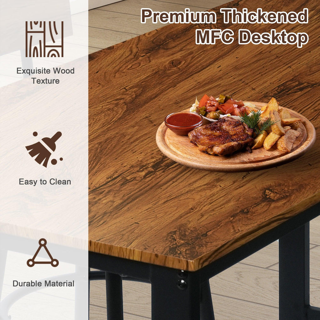 This set features a bar table and chairs set for 4, ideal for small gatherings and intimate dinners. The 4 PU leather chairs are padded and comfortable, providing an enjoyable sitting experience. The bistro table and chairs set is easy to assemble and maintain, thanks to its simple instructions and durable construction.