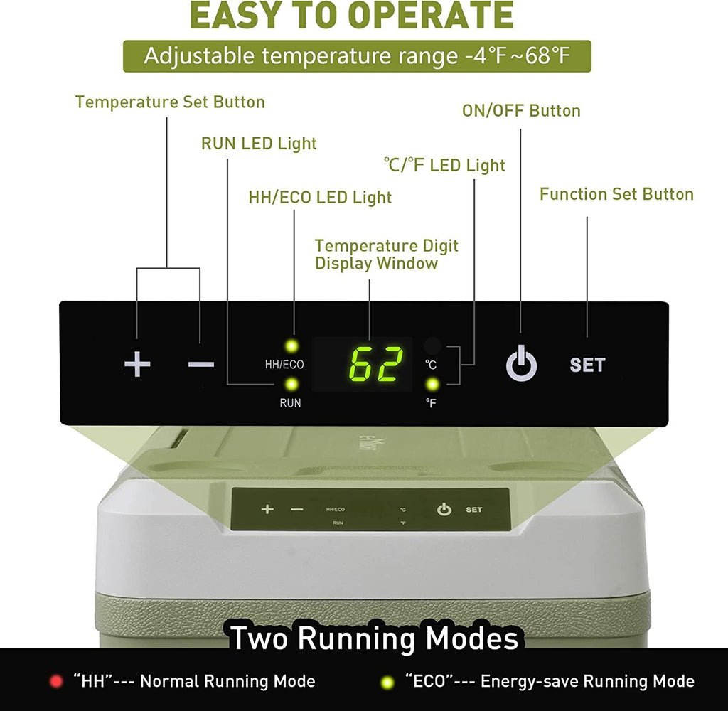 Energy Saving and Low Noise: The car refrigerator is equipped with HD LED display, easy to operate and precise temperature control, you can adjust HH (normal running mode) and ECO (energy saving) modes on the display as needed, which is both energy saving and environmental protection. The low noise design <45dB provides you with a quiet and comfortable operating environment that does not interfere with driving or sleeping.