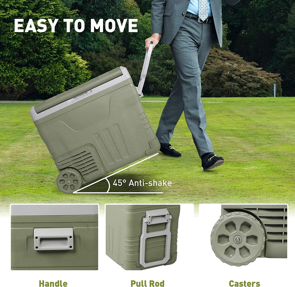 Portable and Durable: The case is made of HDPE and PP, which is strong, durable, crash resistant and not easily deformed. The interior is made of embossed aluminum plate, which is environmentally friendly and energy-saving. Wheels, handle and pull rod design allow you to easily take your portable refrigerator anywhere.