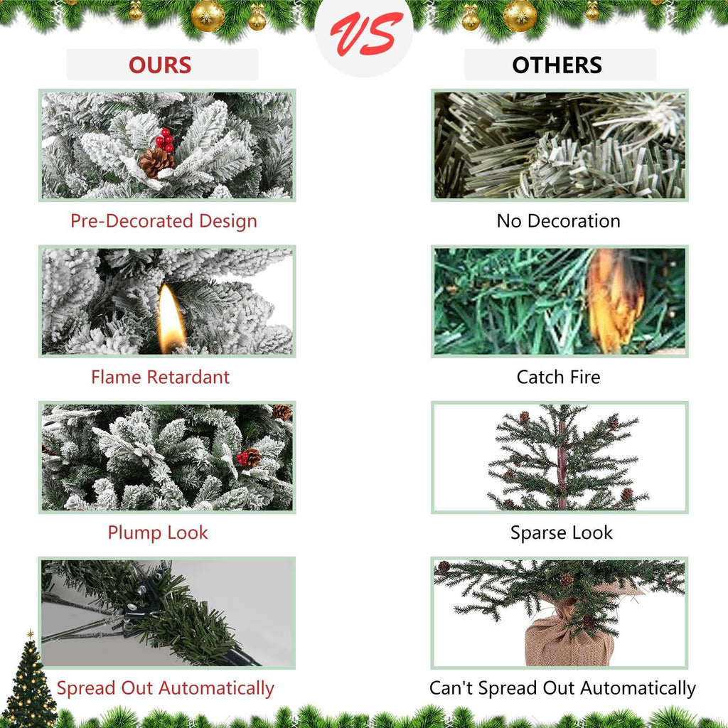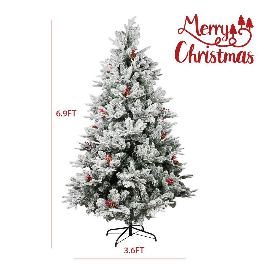 - This 6.9ft Christmas tree, featuring a realistic appearance and festive pine cones & red berries for a touch of traditional charm.