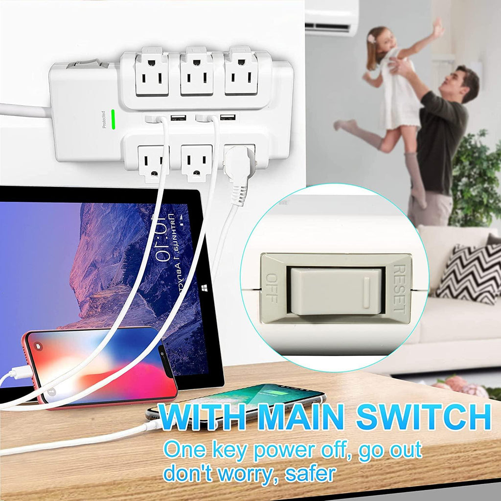 - 6 AC outlets+4 USB charging ports(5V/4.8A in total/4A), is wide compatibility, included LED indicator. With 6ft extension cord for long distance use, to solve the problem of the power cord is not long enough.