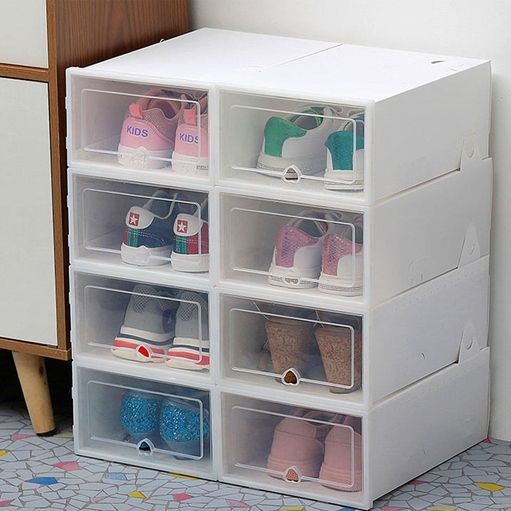 Our Stackable combined shoe cabinet is made of Plastic material,Safe and Durable, excellent, and Eco-friendly. It will save time finding shoes to wear & tidy up your shoe collection like never before. You can easily take out your shoes even when units are stacked or on a high shelf. The see-through materials allow you to see what's inside at a seconds glance. Suitable for: bedroom, living room, storage room, balcony.