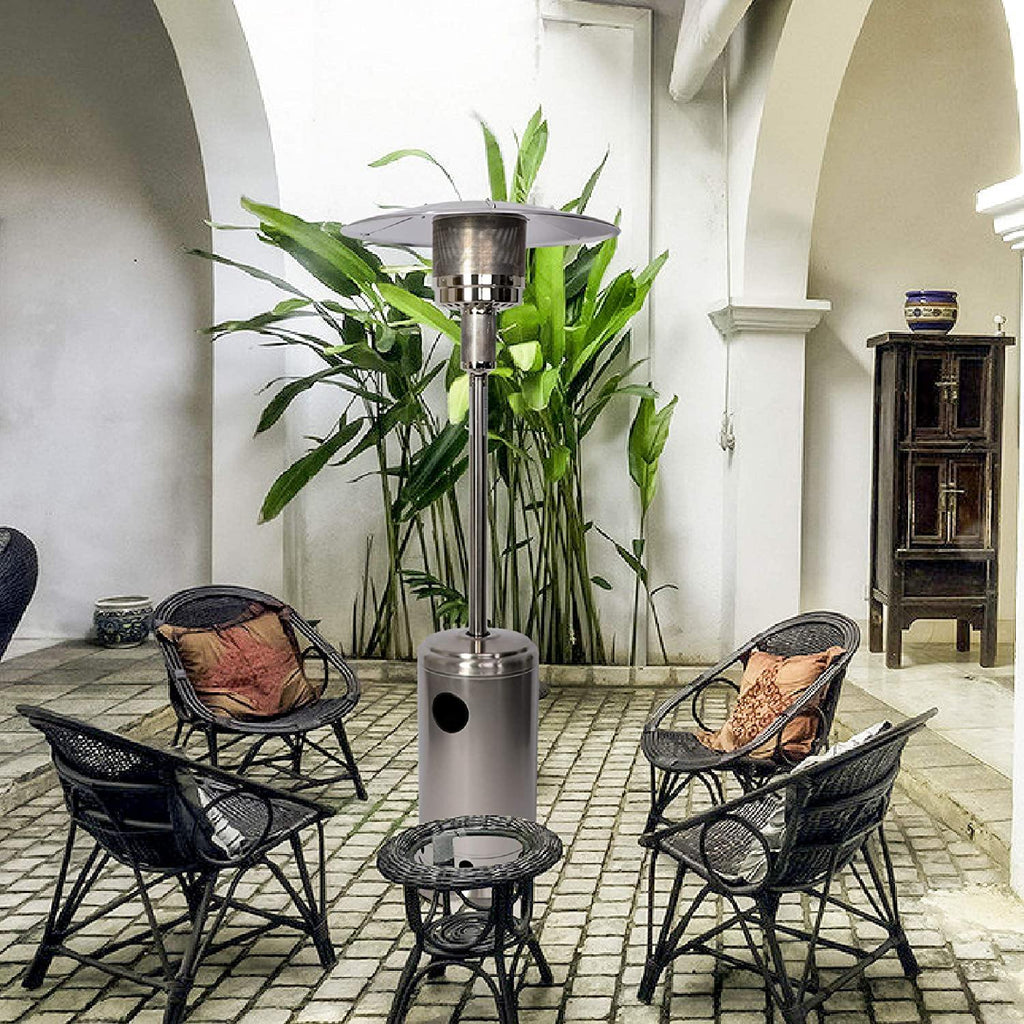 (3504)Durable Stainless Steel Casing: This propane heaters outdoor is made of stainless steel for faster heat transfer and longer durability. This outdoor patio heater doesn’t have an issue with the heat screen warping or melting. Gas types include propane, butane and mixtures (LPG).