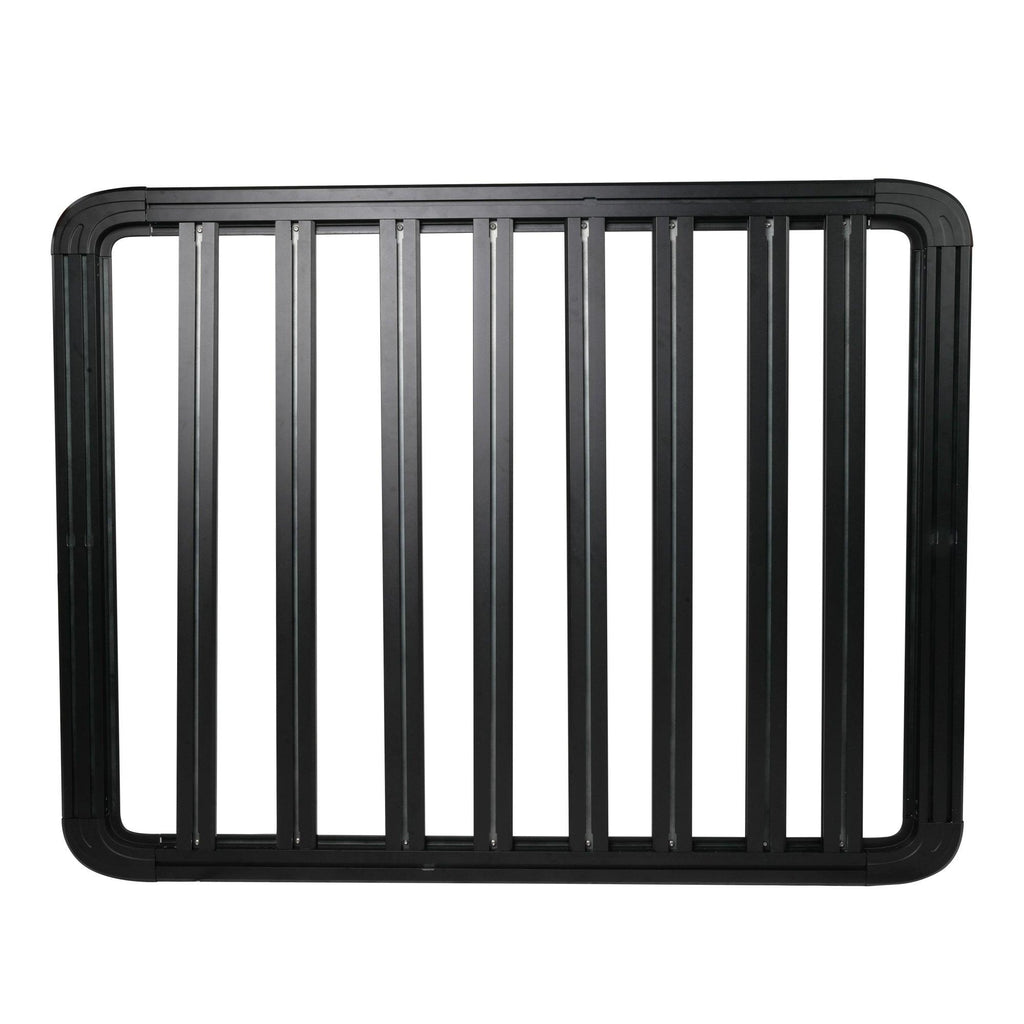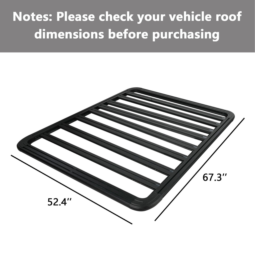 Heavy materials: Flat top luggage rack adopts engineering aluminum structure, black powder spraying, rust and corrosion prevention, durable, light weight. Up to 385 pounds depending on model and roof type.