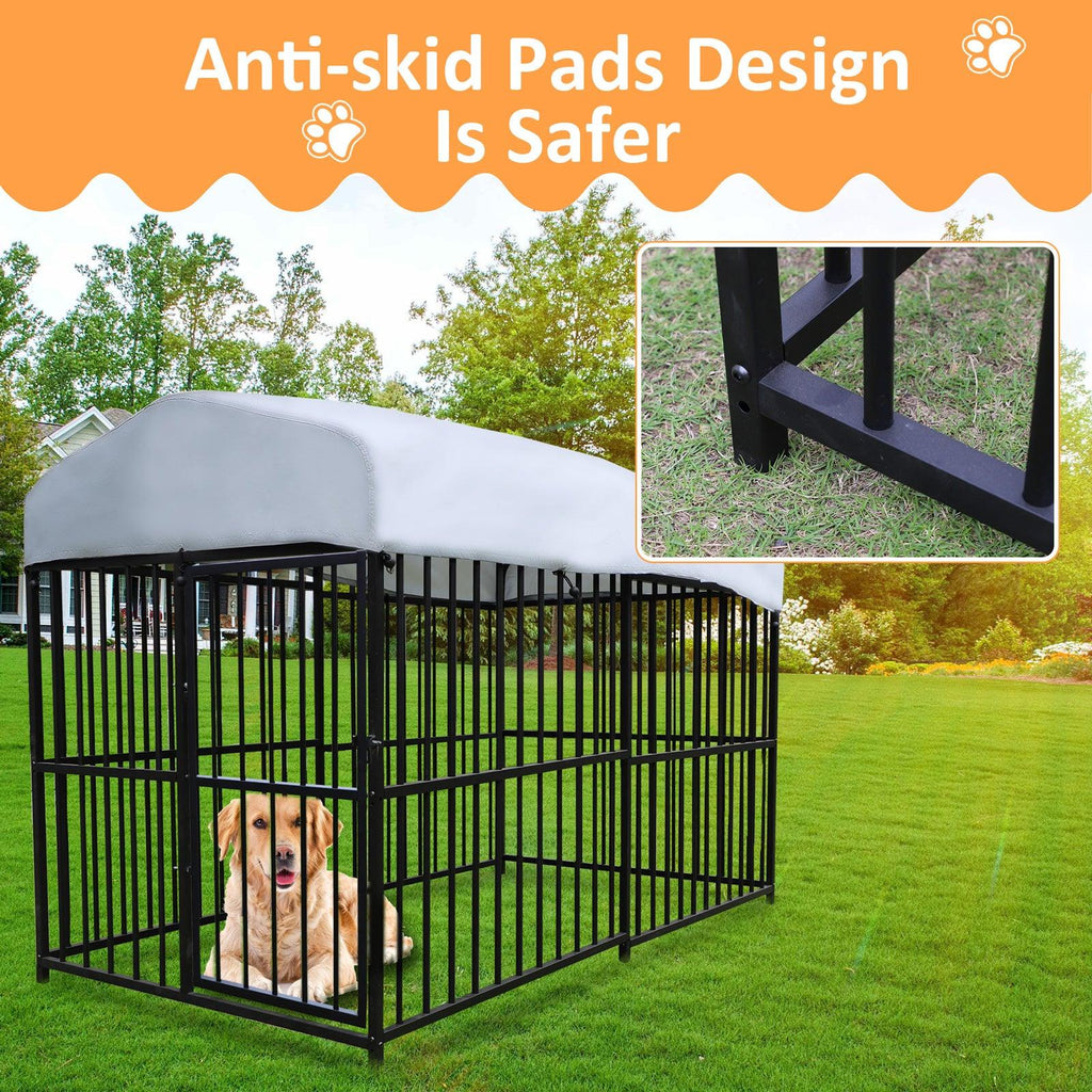STRONGER CONSTRUCTION: The outdoor dog kennel is made of strong and durable rustproof metal and weighs about 83 lbs. Comes with 6 non-slip rubber pads to prevent the dog crate from moving. The non-slip design holds the cage in place for added stability.
