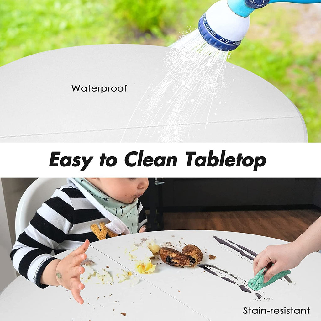 Durable Table: Stain-resistant and waterproof tabletop is easy to clean and can be used without a tablecloth. With the resin tabletop, you don’t worry about the inevitable spills and banging spoons