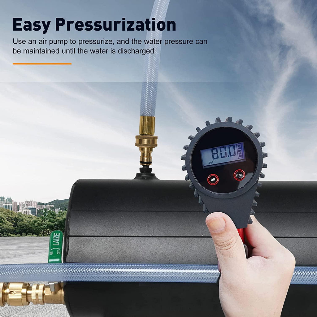 Easily Pressurize: The pressurized roadshower water tank is pressurized using an air pump. The pressurized water tank holds 8 gallons of water, the sun heats the water up to 30°C, and you can also use the shower head to enjoy a hot bath outdoors.