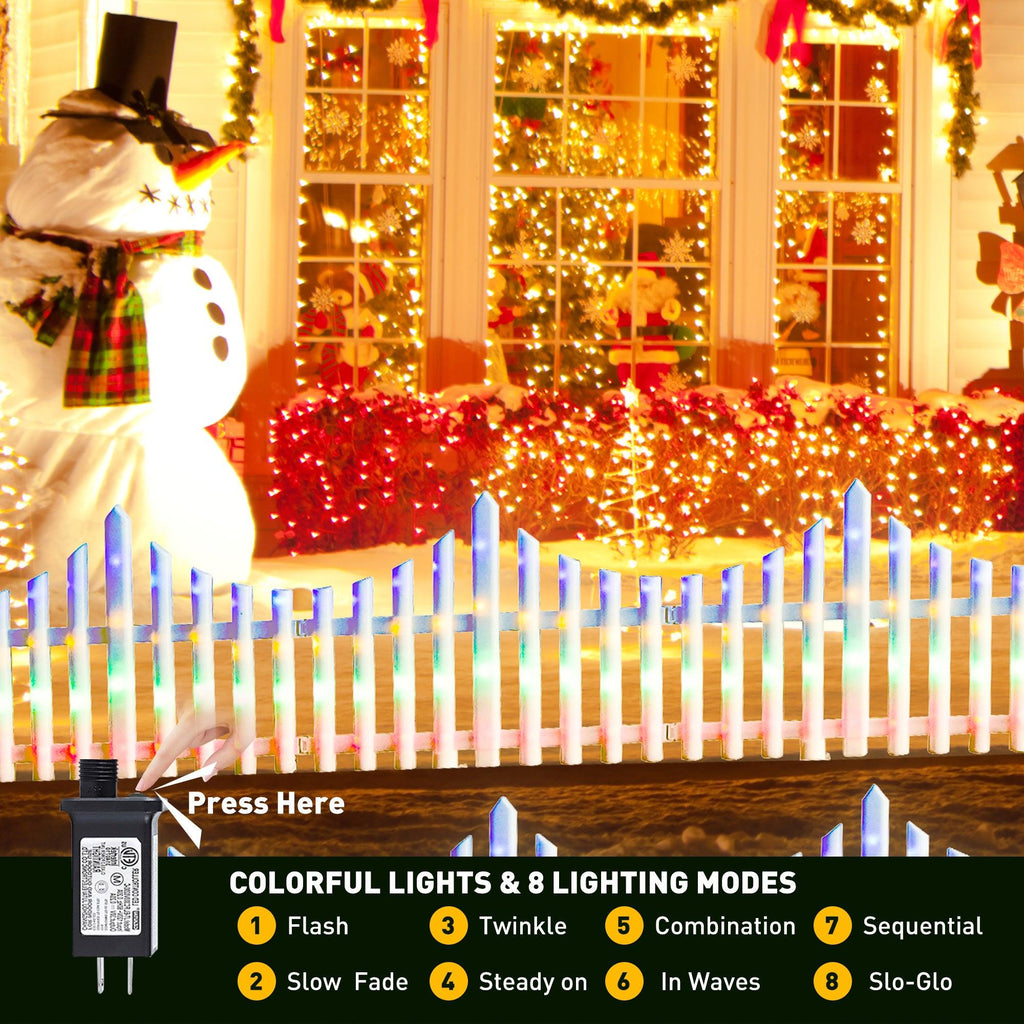 4 Colors Lights & 8 Lighting Modes: Illuminate your home and yard with 8 enchanting lighting modes easily switchable by pressing the round button on the plug. Make your home, yard, and surroundings more captivating.