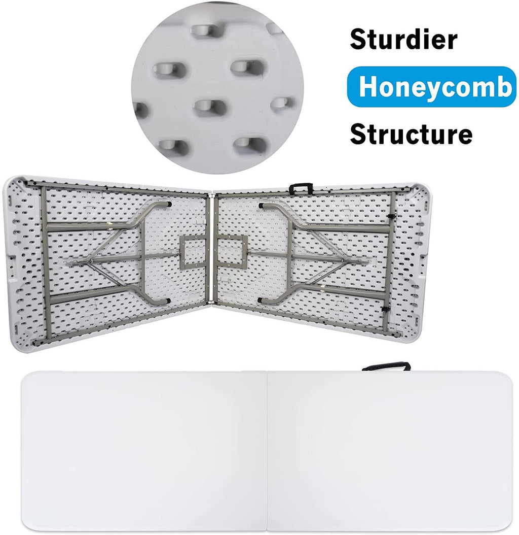 Solid Tabletop & Easy to Clean: Made of heavy duty blow molded High Density Polyethylene (HDPE). The surface is waterproof, scratch and impact resistant, allowing this folding dining table easy to clean.