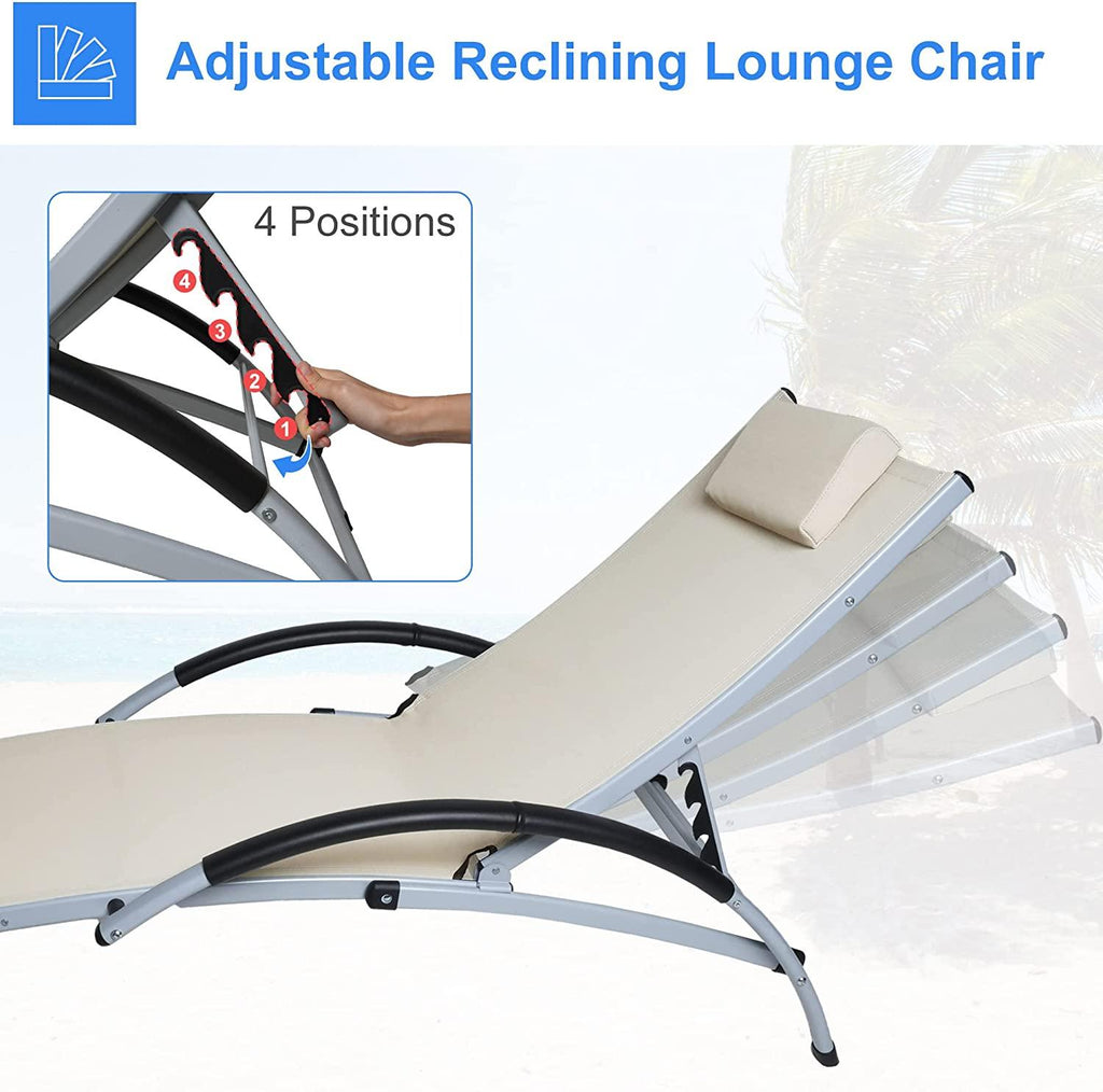 Its ergonomic backrest can be adjusted to 4 different positions to meet your different needs and provide you with a comfortable experience. Besides, we also offer extra removable pillow and cushion for you. You can have a relaxing time with this practical chaise. And the portable design makes it convenient to move and carry for indoor or outdoor use. Also, you can fold this lounge quickly for easy storage and saving space.