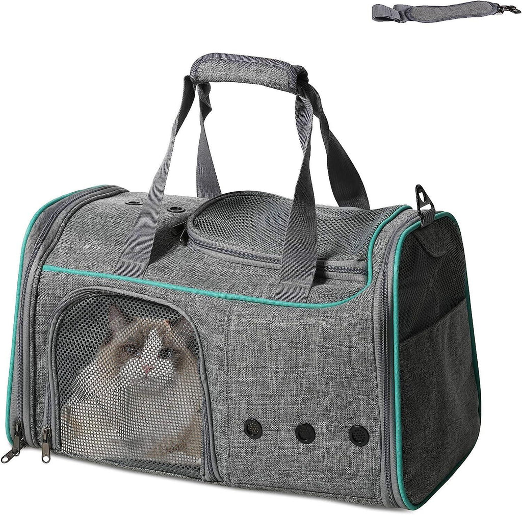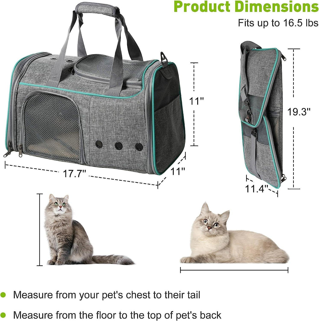 Comfortable and Practical: This cat carrier has multiple entrances for easy pet access. Comfortable and removable fleece padding allows your pet to rest and relax. Multiple storage pockets to store pet supplies, very convenient to use.