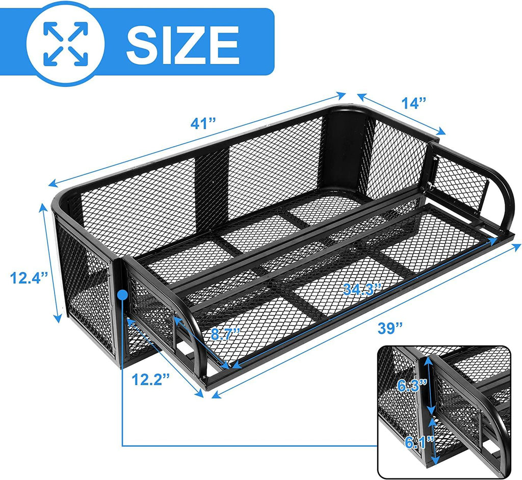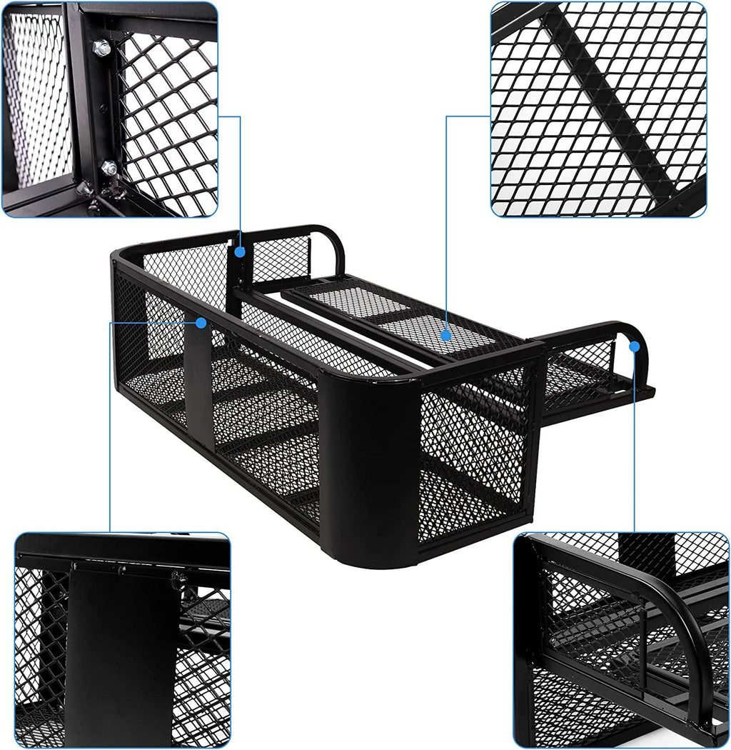 Universal Fit Rear Cargo Basket - Expanded Large Capacity Load of 500lbs with 41 X 14 X 12.4 Inch Measures / Coated Black Tune is Compatible to Most ATV/UTV Motors / Left Nothing Behind & Carry All Luggage along with you with OUR EFFICIENT ATV BASKET.