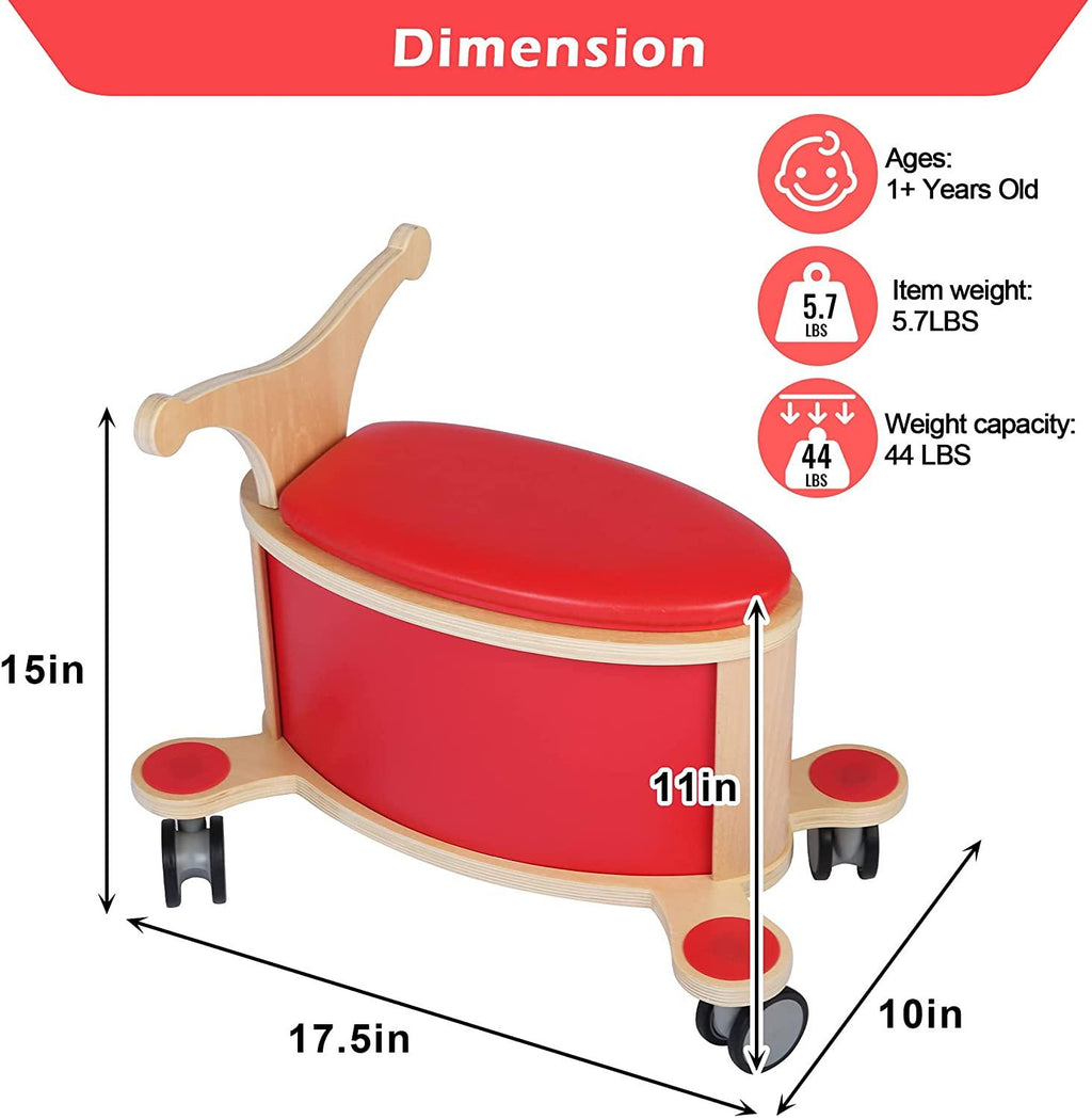 - Material: Made of Wooden frame and leather seats. Size: 17.5in(L) x 10in(W) x 15in(H), Seat Height: 11in. Item weight: 5.7LBS, Weight capacity: 44LBS; Ages: 18 month +.