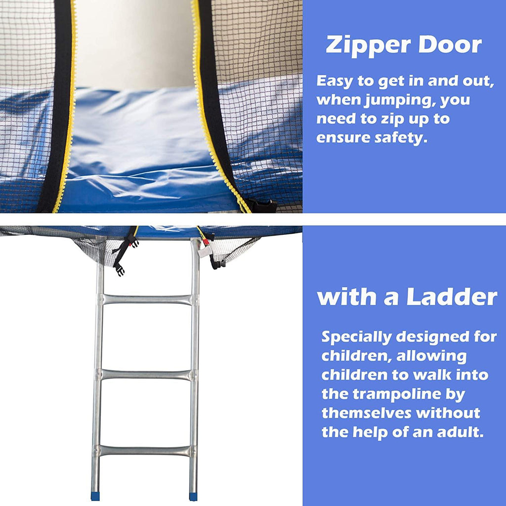 Humanity Design and Good for Fitness: The trampoline comes with a stable ladder and buckle-up closure system that is not only convenient for kids to climb in and out but also ensures safety when enjoy jumping. Besides, it trains a wide range of muscle groups, improves balance and coordination, increases cardio-vascular fitness, and enhances parent-child interaction.