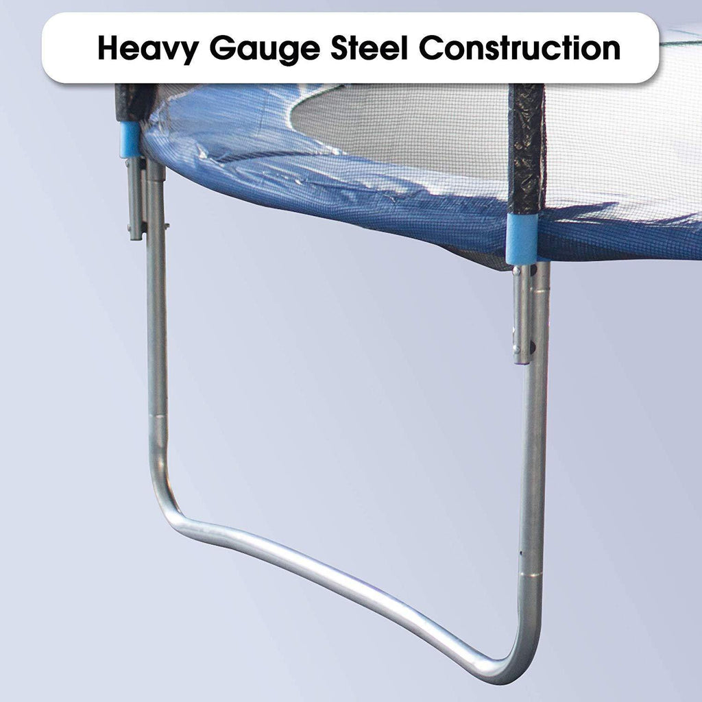 Solid Construction: Constructed of heavy-duty galvanized steel pipes with a wear-resistant and rust-resistant zinc layer, the frame of the outdoor trampoline is durable and not easy to fade with a long lifespan. What's more, there exist 4 big U-shaped legs providing sufficient support and stability.