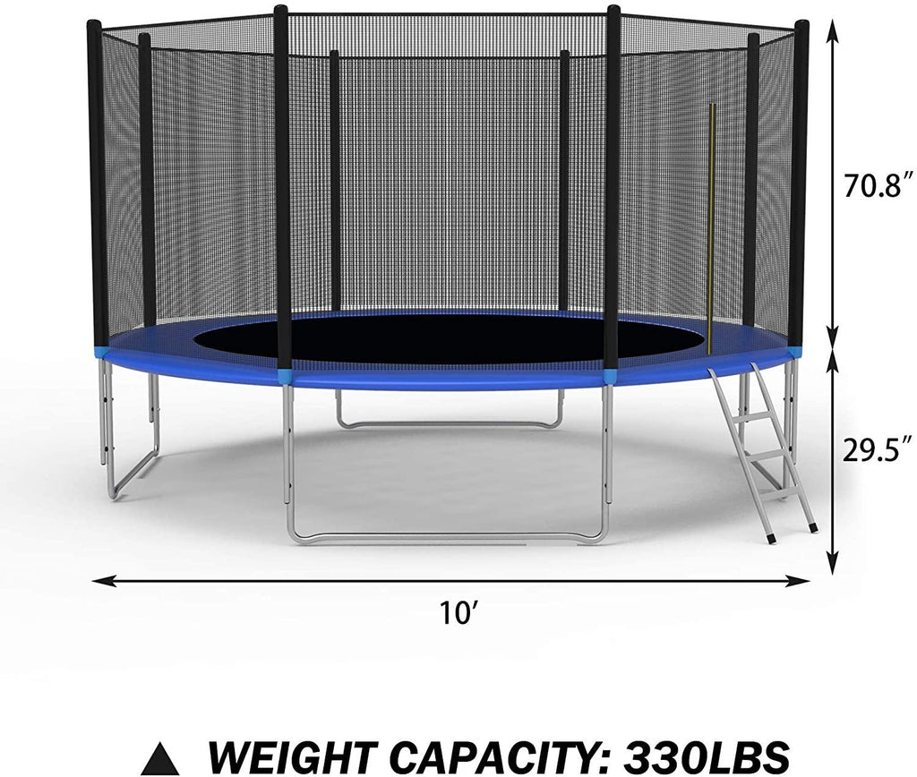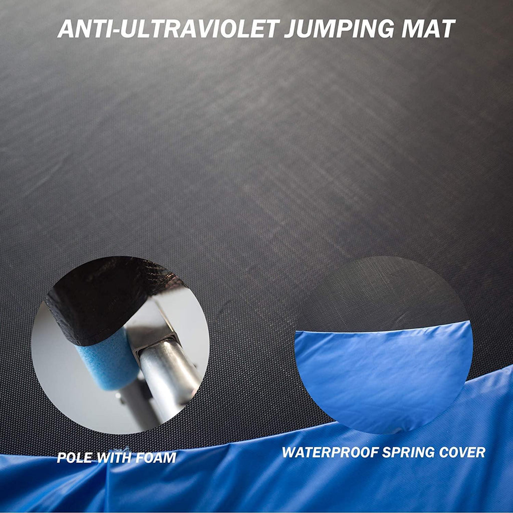 Superior and Safe Bounce Experience: Made of high-strength and wear-resistant PP materials, the high-resilient jumping mat provides unmatched rebounding force. More than that, there exist plenty of steel springs that connect the tightly woven jumping mat and the frame to provide a comfortable jumping force.