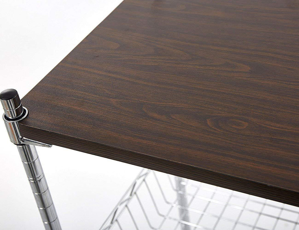 - Three-layer shelf: 3- shelving unit, MDF wooden board use as a cutting board, wire shelf, and basket can be adjusted in 1-inch increments