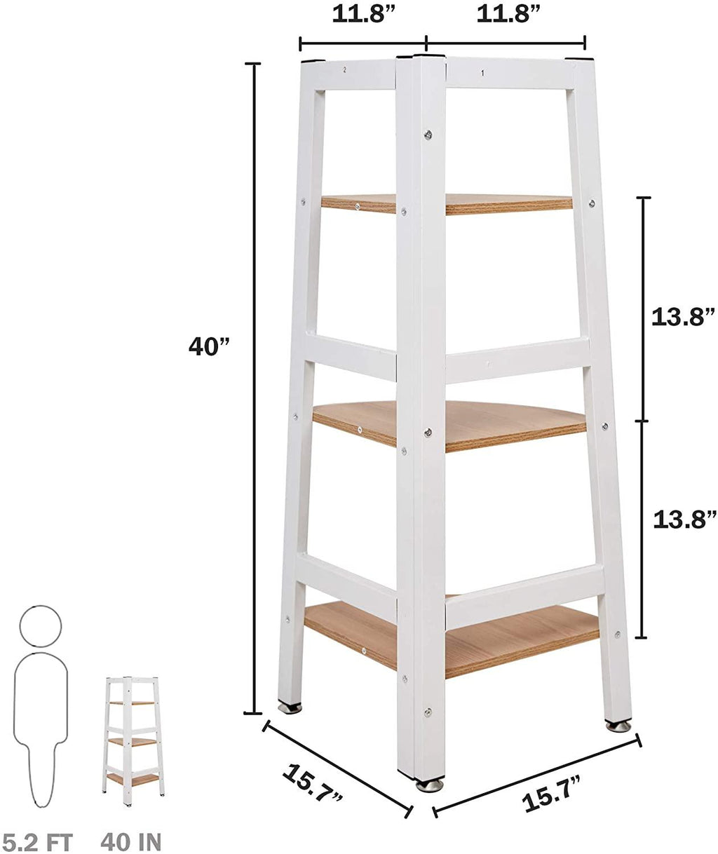 - Spacious Storage Rack make full use of your room space. 3 fan-shaped shelves offers ample space to display and organize books, magazines, cosmetics or other decorative object. 13.7” distance beteen each tier is far enough to display indoor potted plants.