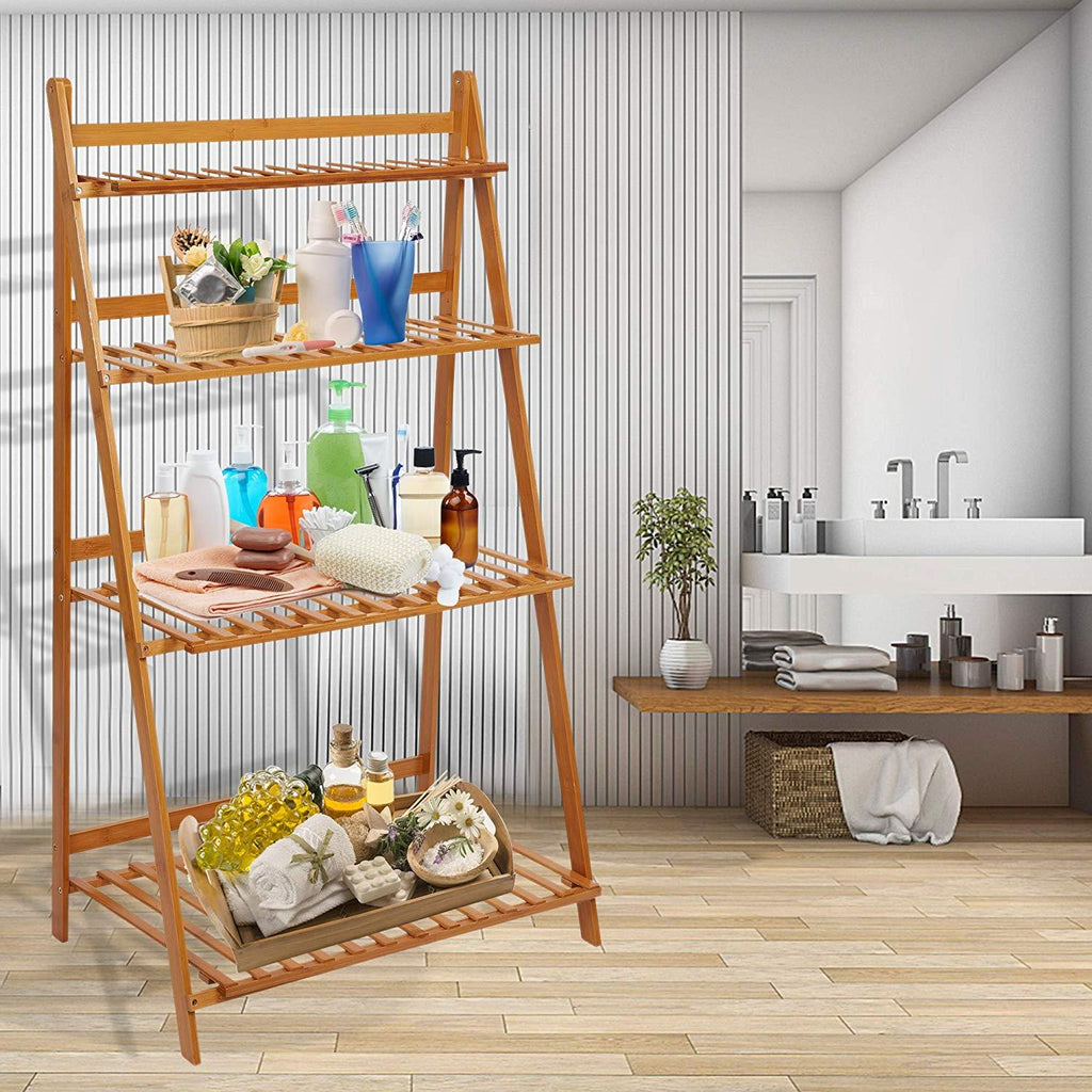 - The 4 tiers bamboo rack and storage shelf is convenient to place towels, sundries, books, plants, spice in many places