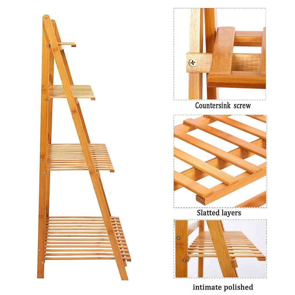 Foldable design makes it easy to carry and store. Use indoors, outdoors or corner planter display shelf. With more choice and convenience but small place. Material of bamboo is easy to clean.