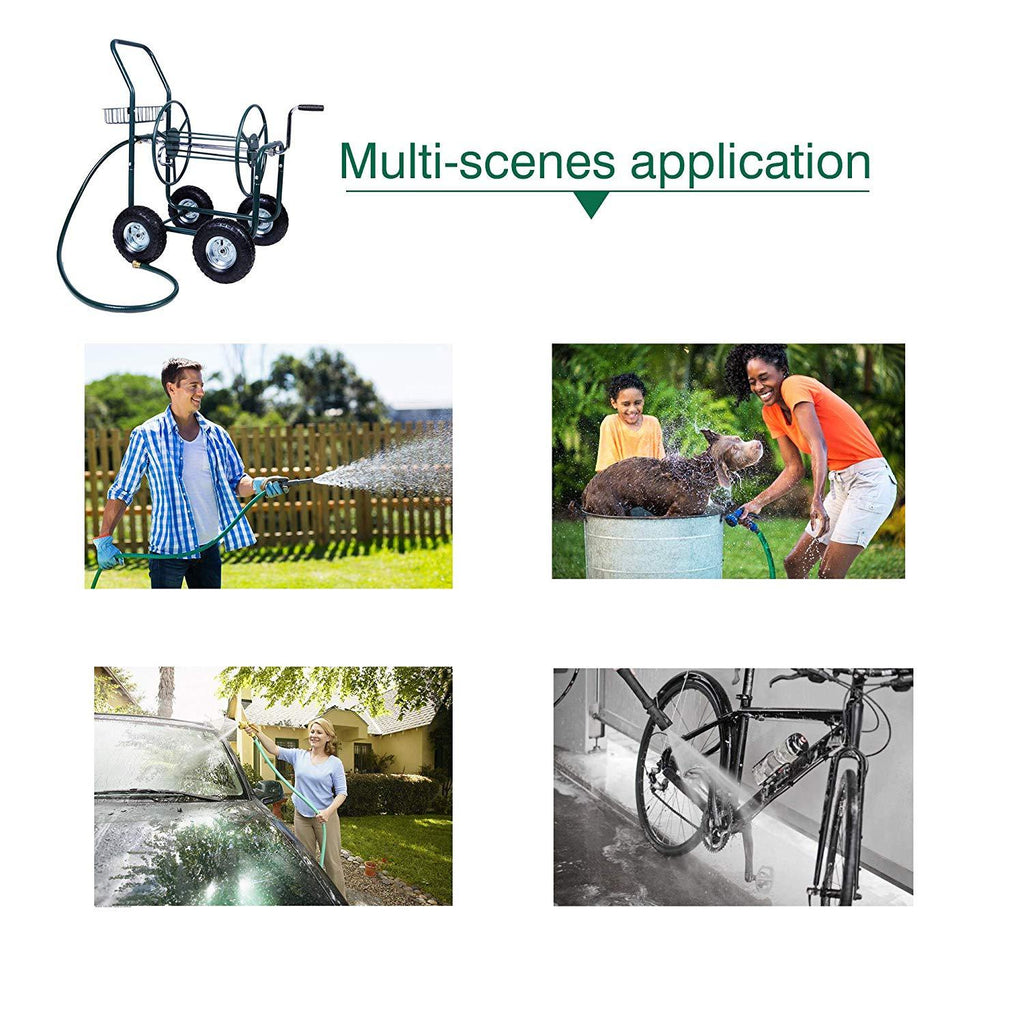 Multi-uses: This garden hose reel cart is suitable for gardens,garage and construction sites.good choice for watering plant,washing car ,water delivery and so on.