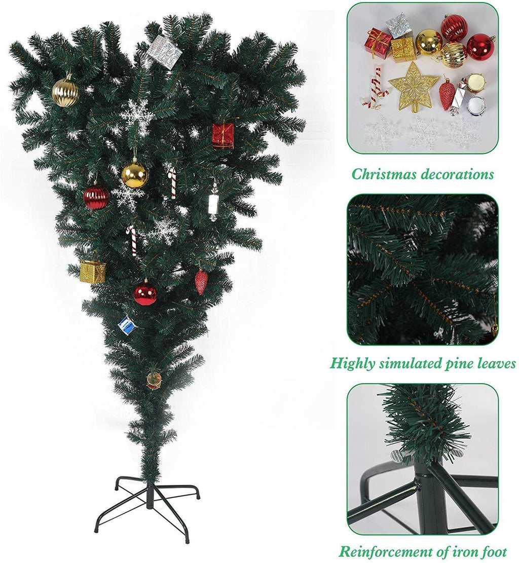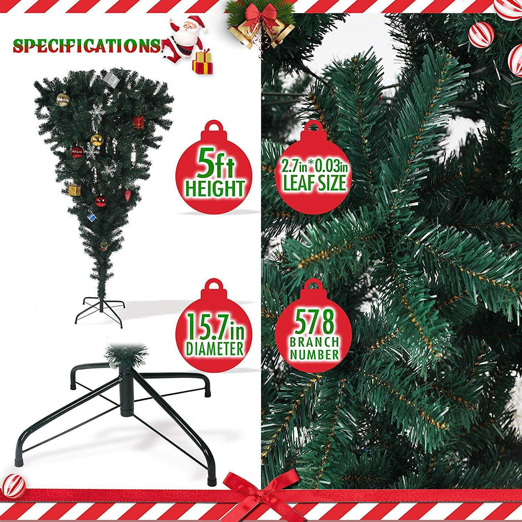 The upside down christmas tree is made of durable steel stand strong enough to support the tree. There are 578 tips for a quality look to decorate your home and any occasion. It is very easy to set up and storage - comes in parts, branches can be folded. Believing that the Upside Down shape give you a different feeling during holiday festival.