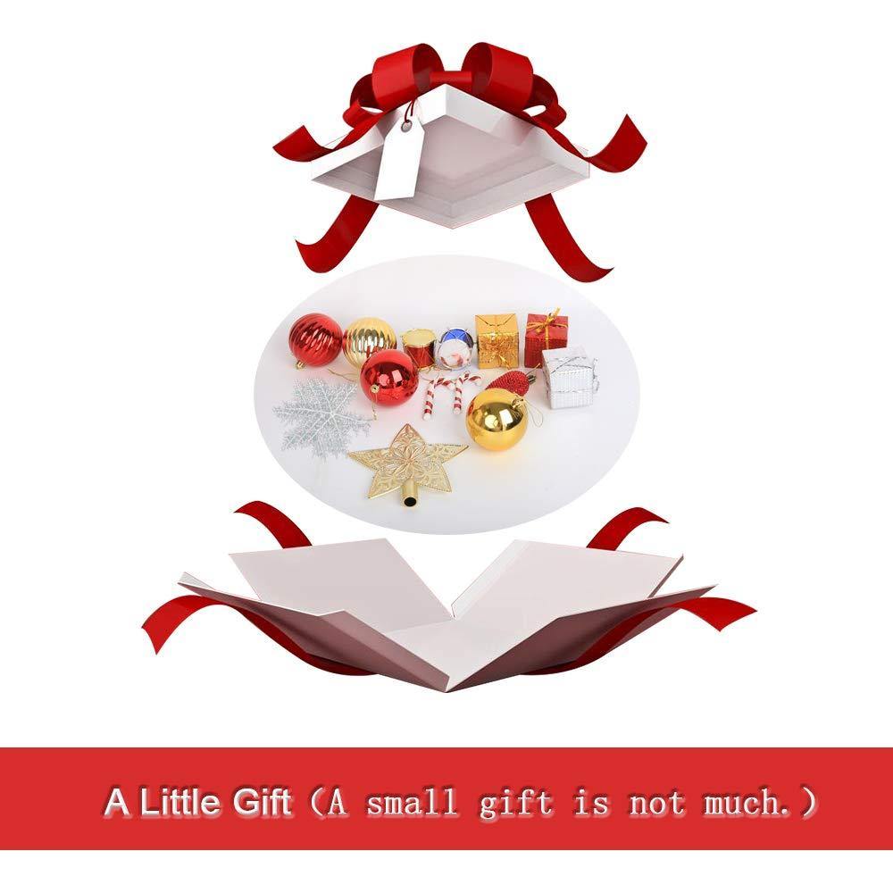 Package include: 1x 6 ft Christmas tree, 1x foldable metal stand, 1x Christmas tree decorations(17pcs)