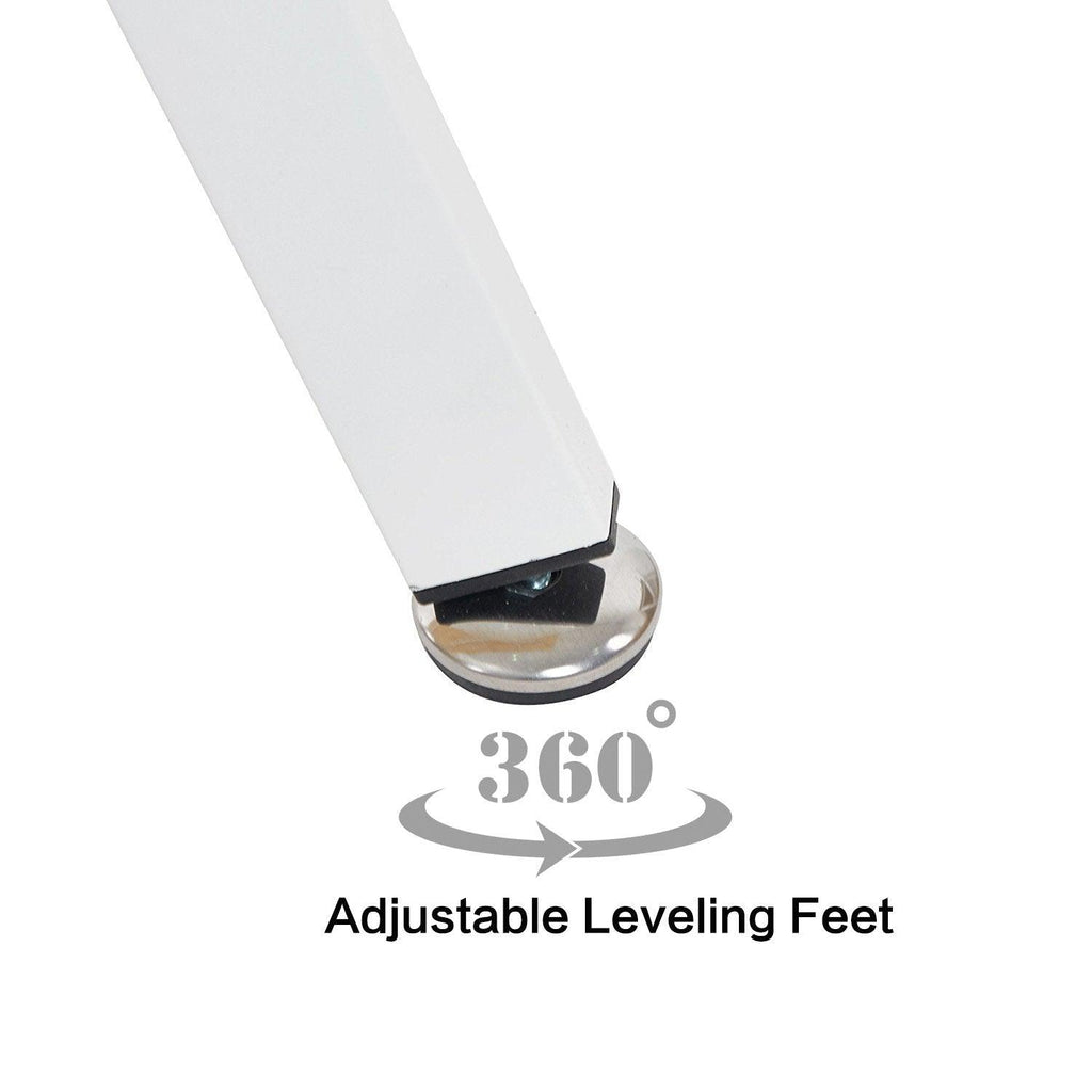 - Reinforced triangular metal frame support ensures the super stability of the desk; Adjustable round foot pads keep balance of the table and prevent it from destroying the floor