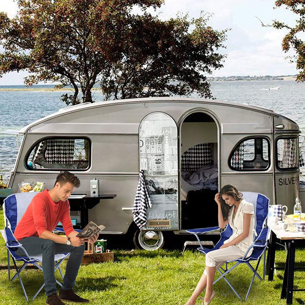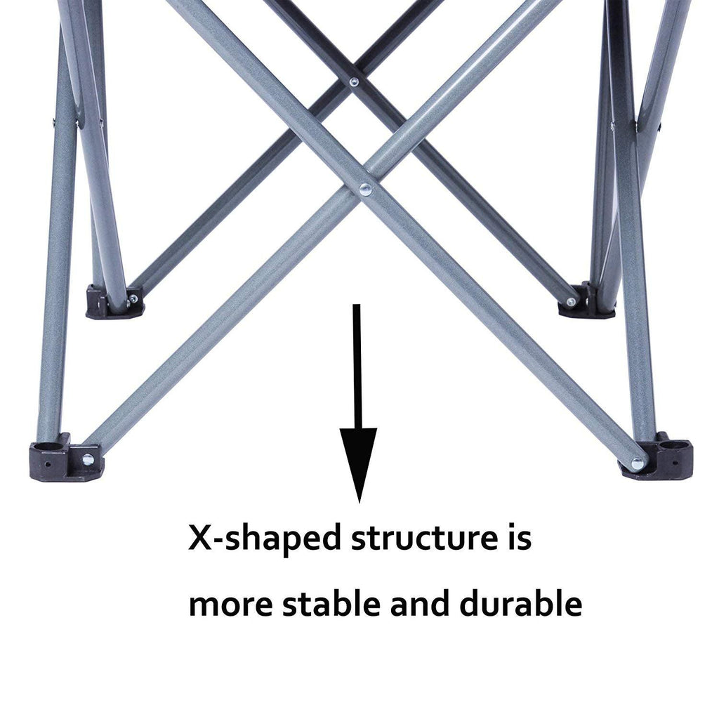 FEATURES: Double 600D Oxford fabric with cotton sandwich,very strong and sturdy. 16mm power coating steel tube frame support 270 lbs heavy duty. Mesh cup holder and armrests. Light weight and oversized camping chair. Design for indoor outdoor sports activities.