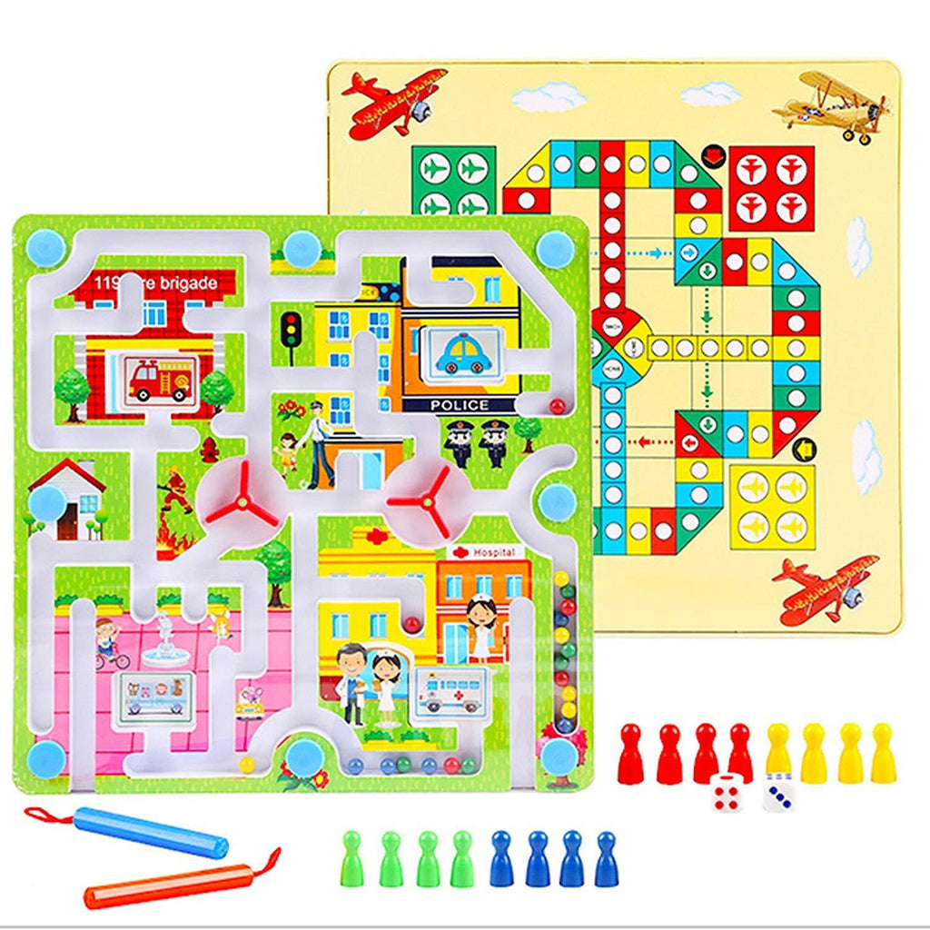 There are two different sides in the boards. One side is the maze toy, the other side is the flying flight chess.